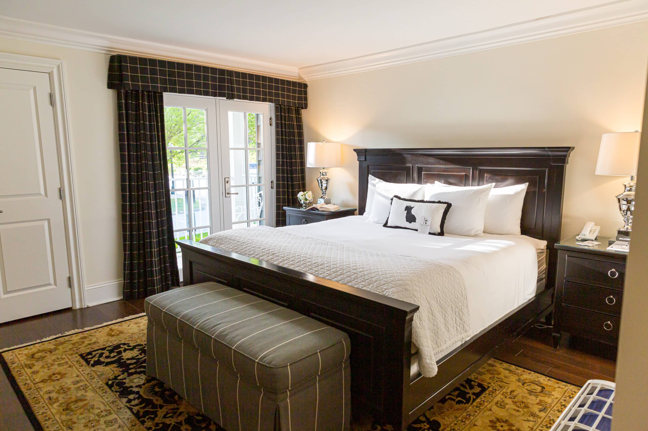 The Park on Main is a 24-suite luxury hotel with an upscale-rustic theme, providing elegant accommodations in beautiful Highlands, NC. Located right on Main Street, our relaxing suites include both picturesque views of the hotel’s garden terrace, inspired by Central Park in New York City, and balconies overlooking the quaint streets. The Park on Main Hotel is also pet-friendly. Our mascot Mr. Pickles, a spunky black Scottish terrier, helps to welcome all of our guests. We pride ourselves in making sure every aspect of our guests’ stay is memorable with things like MacKenzie-Childs dog bowls, Orvis dog beds, Keurig coffee makers, and custom all natural soaps in the rooms. If you’re looking for the best hotel in Highlands, North Carolina, look no further than The Park on Main.